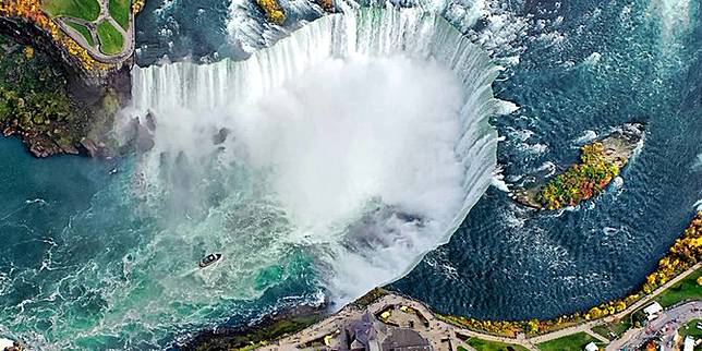 Niagara sebenarnya adalah lereng yang panjang dan curam, berada di ujung daratan tinggi dan memisahkan beberapa daerah daratan. Di atasnya, mengalir air dalam jumlah yang luar biasa banyak. Lebih dari 170.000 meter kubik air mengalir di atas garis puncak air terjun tiap menitnya. JUmlah air yang luar biasa ini memberi pemandangan yang indah.