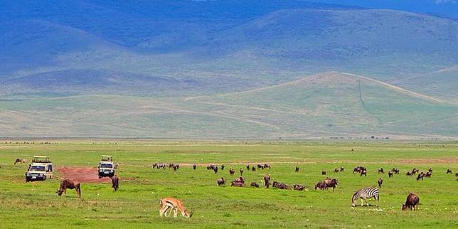 Dari bentangan kawah ini Anda bisa dengan mudah menemukan gajah, zebra, dan badak hitam. Cheetah dan singa juga berkeliaran di tempat ini. Belum lagi ada 500 spesies burung yang terdokumentasi berhabitat di sana.